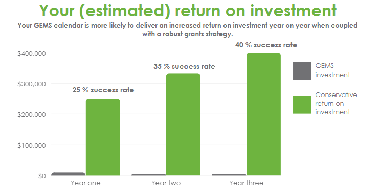 GEMS Grants Portal is best suited to organisations with an annual revenue over $1 million.If your organisation is smaller, we have a product specifically for you – check out GEM Local. *Reported by GEMS Portal users on their grants program costs.
