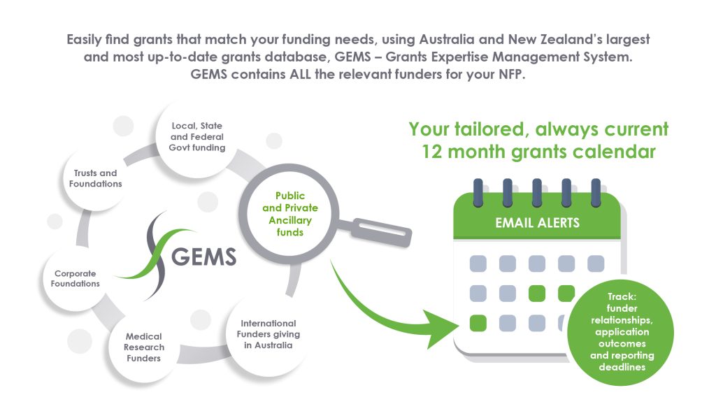 It’s important to note that not all PAF information is publicly available, but if you’re looking for one grants database that gives you PAF information and reports PLUS all other available funding opportunities from trusts and foundations, health and medical research funders, corporate foundations, local, state and federal government grants and tenders, and international funders that give to Australian charities, GEMS is it.